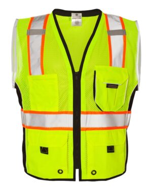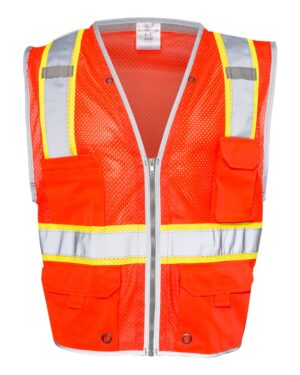 3-3.9 oz, Accessories, Adult, ANSI Class 2, Exclusive Brands, Full-Zips, High Visibility, Media Pocket, Mens & Unisex, Mesh, No Treatment, No Visible Logos, Personal Protection, Pockets, Polyester, Polyester - 100%, Polyester - Over 50%, S&S Exclusive Brands, Safety, Silo Accessories - Safety Vests, Sleeveless, Vests, Visible Logos, Workwear, Zips
