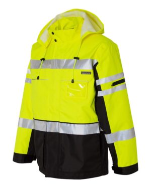 8-8.9 oz, Adult, ANSI Class 3, Exclusive Brands, Full-Zips, High Visibility, Hooded, Jackets, Media Pocket, Mens & Unisex, No Visible Logos, Outerwear, Personal Protection, Pockets, Ripstop, S&S Exclusive Brands, Safety, Silo Outerwear - Bomber/Denim, Unisex, Visible Logos, Water Resistant, Waterproof, Workwear, Zips