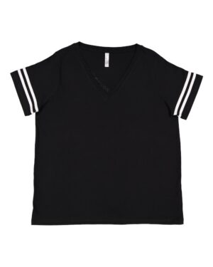 LAT Women's Curvy Retro Ringer Premium Jersey V-Neck Tee