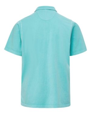 5.9 oz./yd², 100% ringspun cottonClassic fitSelf-fabric collarThree-button placket with ivory buttonsGarment dye finish