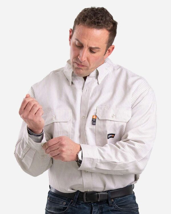 Categories: Cotton - 100%, Dress Shirts, Exclusive Brands, Flame Resistant, Long Sleeves, Mens & Unisex, Personal Protection, Pockets, Silo Wovens - Long Sleeves, Tops, Twill, Workwear, Woven Shirts, Wovens