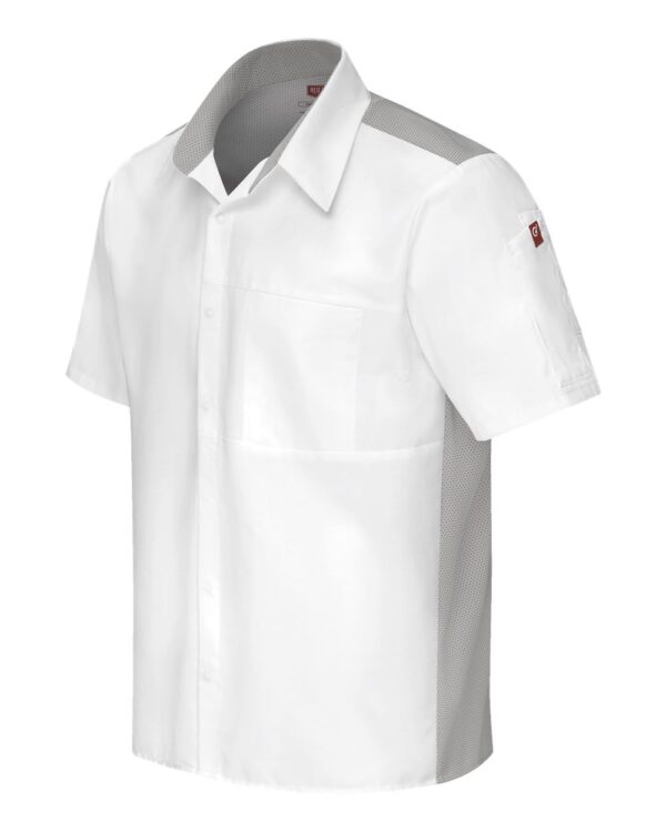 Categories: 4-4.9 oz, Chefwear, Cotton, Mens & Unisex, Mesh, Moisture-Management, Personal Protection, Pockets, Polyester, Short Sleeves, Silo Wovens - Short Sleeves, Visible Logos, Woven Shirts, Wovens