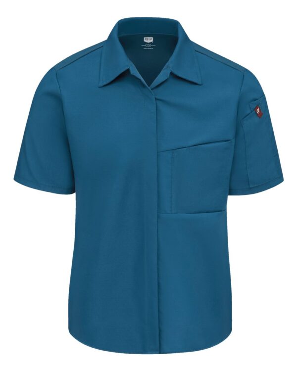 Categories: 4-4.9 oz, Chefwear, Cotton, Mesh, Moisture-Management, Personal Protection, Pockets, Polyester, Short Sleeves, Silo Wovens - Short Sleeves, Visible Logos, Womens, Woven Shirts, Wovens