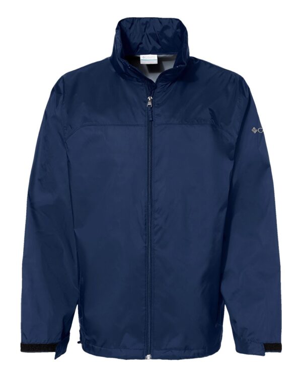 100% nylonOmni-Shield™ water and stain repellentRegular fit Stow-away hoodZippered hand pocketsAdjustable sleeve cuffs and drawcord hem Packable into hand pocketColumbia branding on left sleeveWoven label
