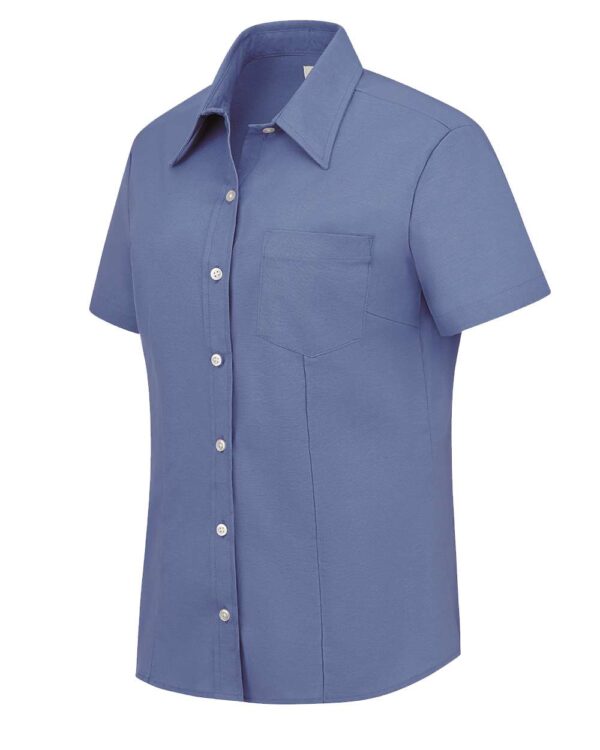Categories: 5-5.9 oz, Adult, Blends, Cotton, Cotton - Over 50%, Moisture-Management, No Visible Logos, Performance, Personal Protection, Pockets, Polyester, Regular (5-6 oz), Short Sleeves, Silo Wovens - Short Sleeves, Stain Resistant, Womens, Workwear, Woven Shirts, Wovens, Wrinkle Free