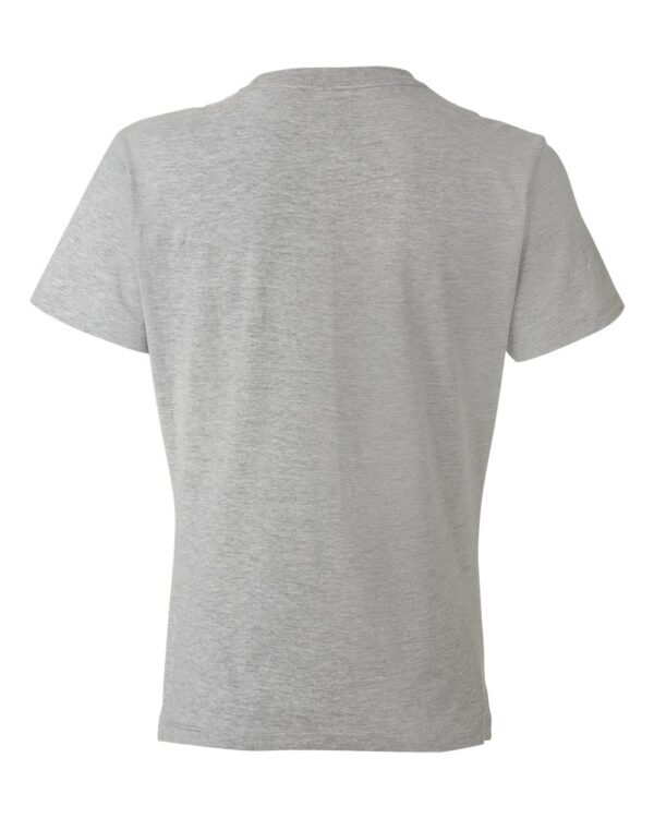4.5 oz./yd², US grown, 100% ring-spun cotton, 30 singlesLight Steel is 90/10 cotton/polyesterCVC – Charcoal Heather, Heather Blue and Heather Navy are 60/40 cotton/polyesterPre-shrunkContoured and side-seamed for feminine fitClean Canvas Technology…