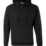 7 oz./yd², 100% spun polyester fleck fleeceCharcoal fleck body with contrast-color solid hood, drawcord and sleevesScuba neckPouch pocketThumbhole on cuffs