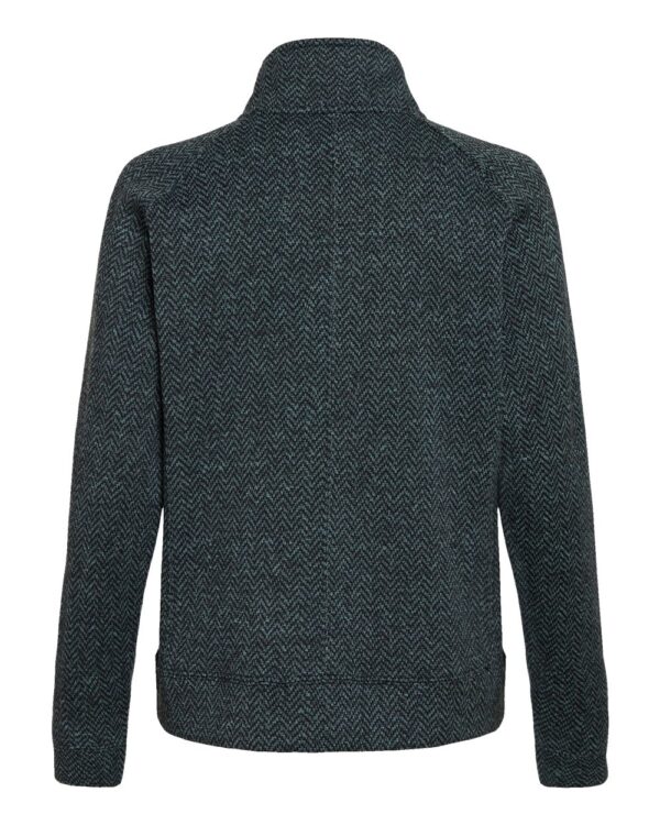 9.75 oz./yd², 100% polyester sweater knitHerringbone texture throughoutFull front zippered placketPrincess seamsWelt pocketsSelf-fabric cuffs and waistbandTear away label