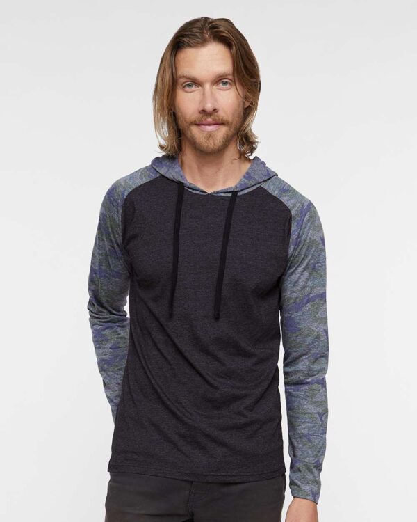 LAT Men’s Fine Jersey Hooded Long Sleeve Raglan T-Shirt