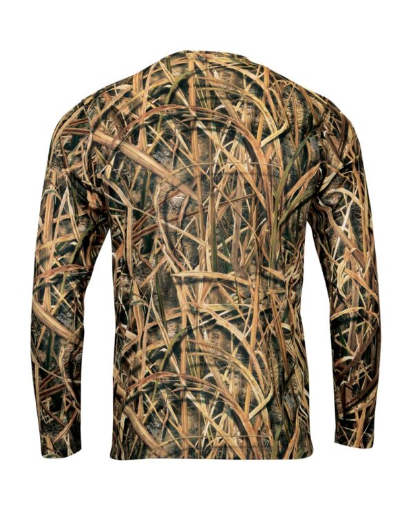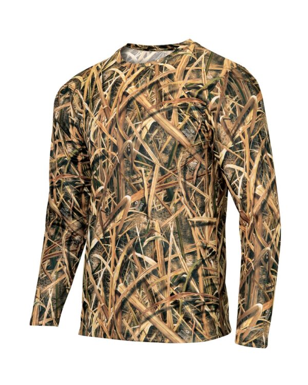 3.5 oz./yd², 100% microfiber performance polyesterParagon Plus moisture and odor managementUPF 50+ protectionWrinkle-resistant finishMossy Oak® printNeck tapeHemmed sleeves and bottomTear away label