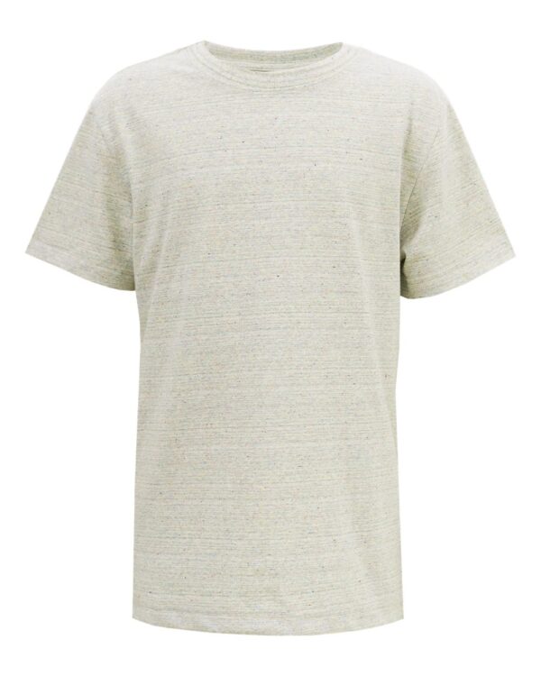 4.4 oz./yd², 50/50 recycled cotton/recycled polyester, 26 singlesRetail fitDouble-needle stitchingBack neck tapeShoulder-to-shoulder tapingLocker loop in neck tape with natural hangtag highlighting environmental storyRibbed-knit neckline for added comfortSide seamsPad-printed neck labelMade…