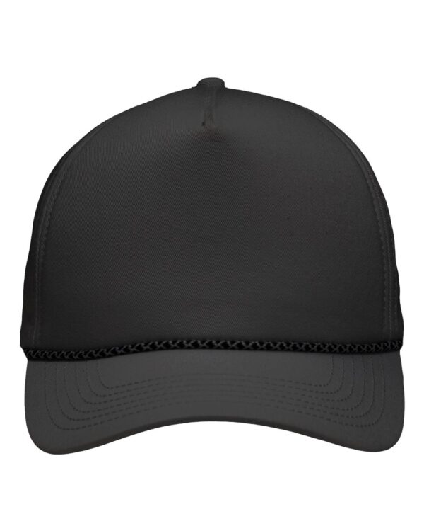 - Structured, five-panel, high-profile with braided rope
