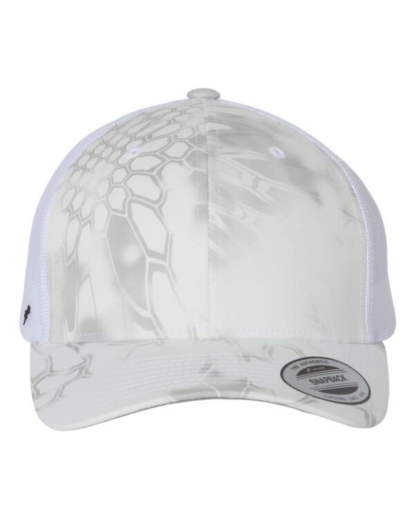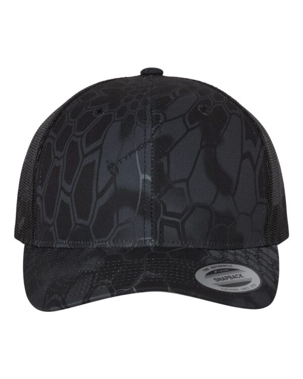 - Kryptek and Veil have a silver undervisor and the YP our-bar logo on the wearer's right side of the cap